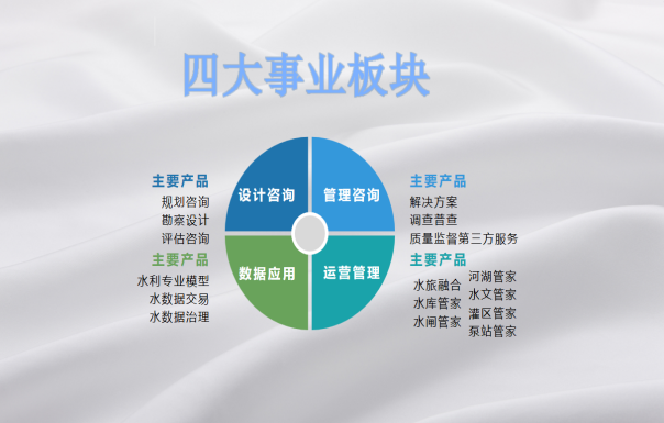 依托“數(shù)據(jù)庫+專家?guī)臁彪p輪優(yōu)勢(shì),打造覆蓋涉水全流程的10類44個(gè)細(xì)分產(chǎn)品,從項(xiàng)目前期調(diào)研評(píng)估到后期運(yùn)維優(yōu)化,從基層水利管理制度搭建到人員專業(yè)培訓(xùn)、資金籌措,全要素保障滿足不同客戶的差異化需求。